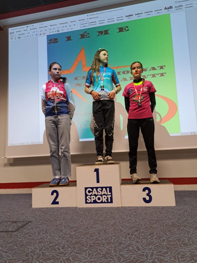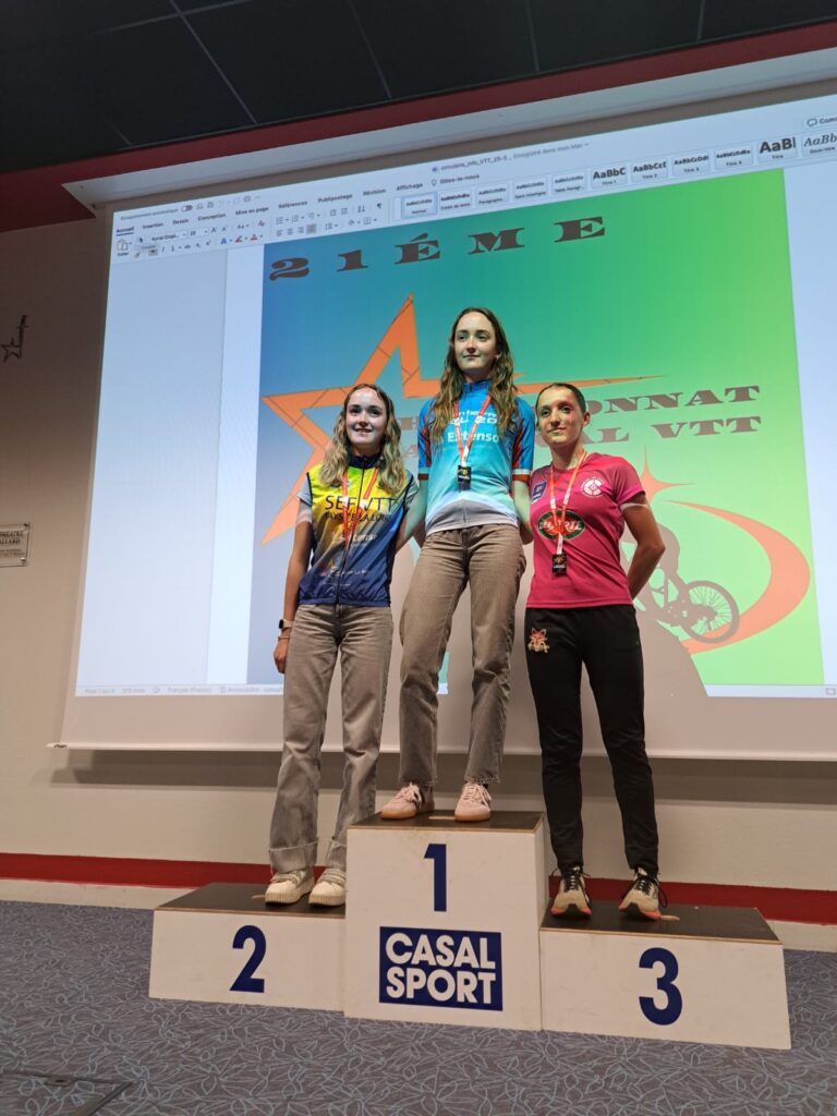Chez les filles , félicitions à Léa, championne de France ! et Lilou, qui remporte la 2ème place sur le podium.