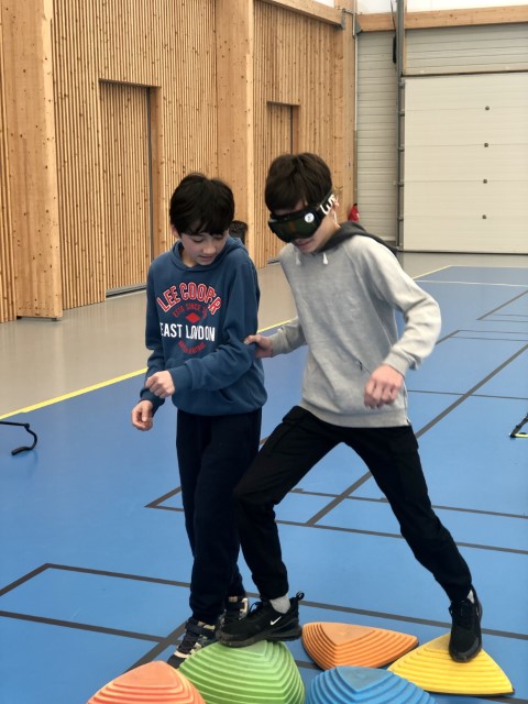 Pendant 1h30, les élèves vivent des mises en situation de handicap dans des activités sportives avec notamment un parcours à