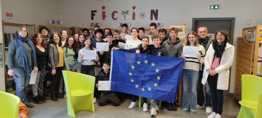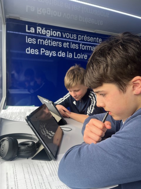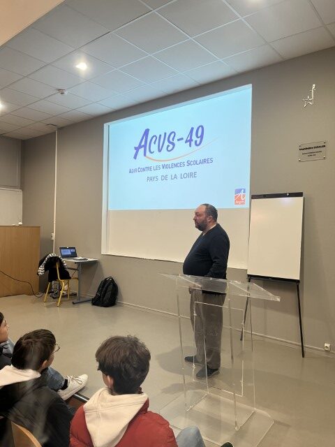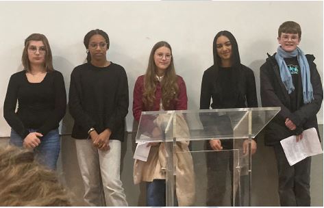 Lundi 17 mars, dans l’amphithéâtre du collège Saint Aubin La Salle, 3 élèves de 3ème du collège SALS, Elea, Manon