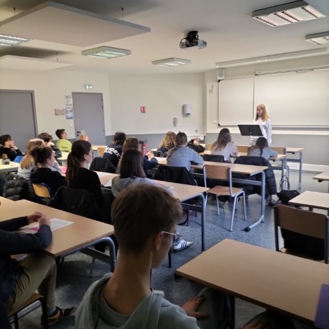 Lundi 17 mars, dans l’amphithéâtre du collège Saint Aubin La Salle, 3 élèves de 3ème du collège SALS, Elea, Manon