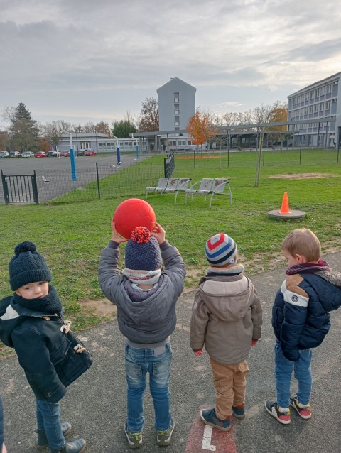Les élèves de maternelle ont découvert des nouveautés sur la cour. Un tableau à craie a été fixé et des