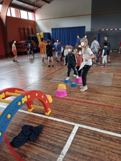 Pour cette dernière semaine d’école, tous les élèves de maternelle ont pu vivre une matinée d’olympiades avec la coopération des
