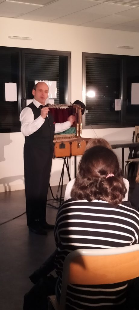 Le vendredi 20 janvier, les élèves de 4e ont eu le plaisir et la chance de voir Sébastien Magere, alias Piero, sur scène, au collège Jeanne d’Arc, pour la pièce intitulée « Antonin, Camelot de scène », écrite à quatre mains avec Paul-André Sagel. Pendant plus d’une heure, avec une énergie folle, l’artiste a redonné vie à quelques-uns des plus grands textes de la littérature française. Marguerite de Navarre, Rabelais, Molière, Rostand, Corneille, Racine, Courteline, entre autres… Tous ont repris vie grâce à la voix et au visage de Sébastien Magere. Formé à la technique du mime, ayant appris les arts du cirque, il accorde une grande place au regard, au silence, au jeu avec le public. Se jouant des imprévus avec l’habileté d’un Scapin, il a su captiver les 90 élèves. À l’issue du spectacle, il a répondu aux questions des spectateurs : la mémorisation du texte, la gestion du trac, l’utilisation du corps dans le jeu du comédien. Un grand moment de théâtre.