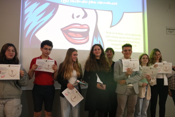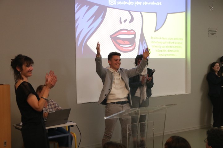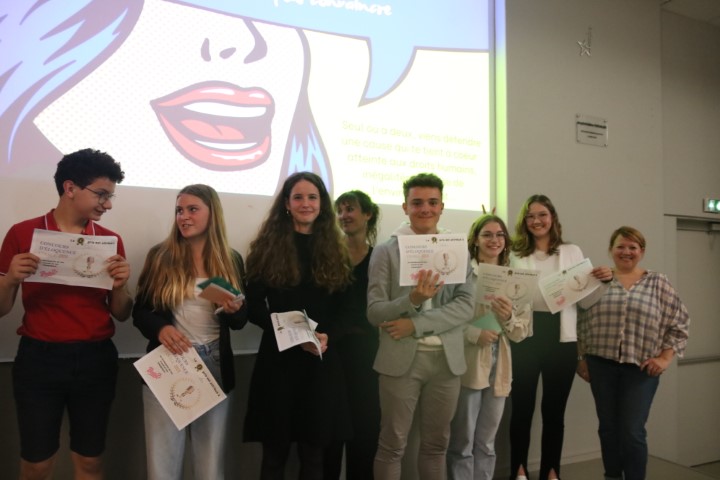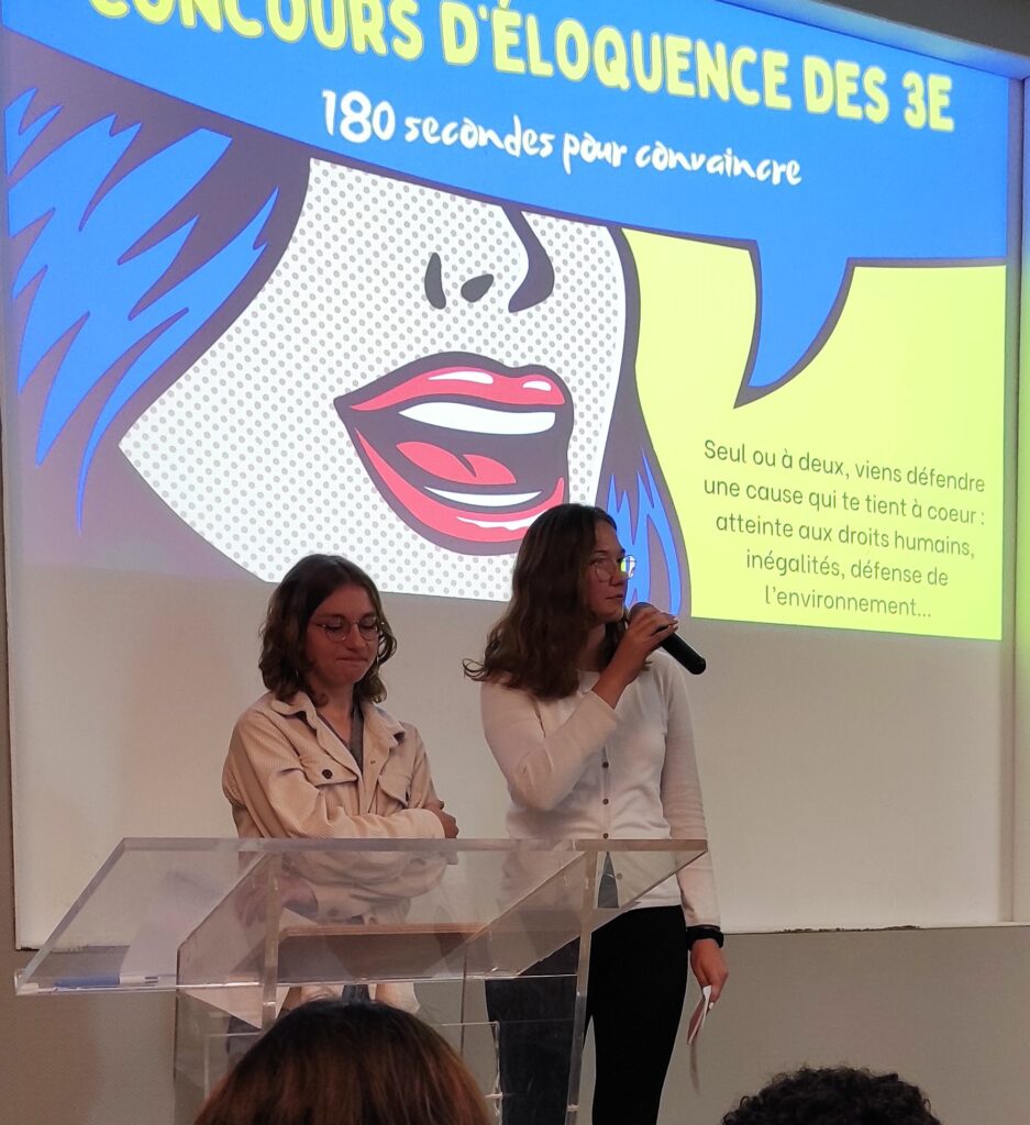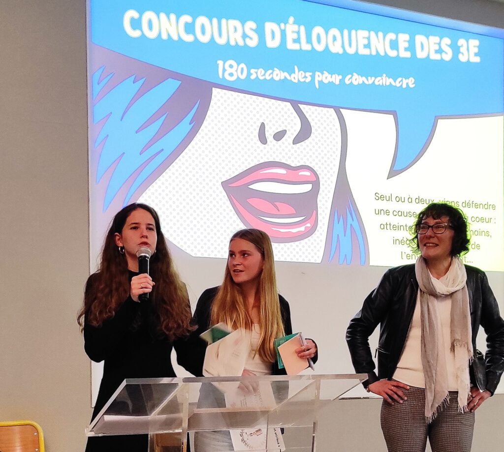 Le 30 mai dernier a eu lieu le1er concours d’éloquence du collège Saint Aubin La Salle. Sept élèves de 3e se sont présentés devant leurs camarades pour prononcer les discours qu’ils préparaient depuis plusieurs mois. Avec des thèmes aussi variés que « La Défense de la cause animale », « la dénonciation des inégalités » ou « le droit des femmes », ils ont su convaincre une salle pleine qui les a applaudis !