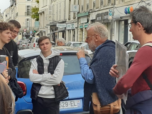 Les élèves de terminale spécialité Histoire-Géographie Géopolitique et Science Politique ont parcouru les rues d’Angers pour découvrir l’histoire et la mémoire de la ville pendant la Seconde Guerre mondiale. Accompagnés de l’historien angevin Alain Jacobzone, ils ont retracé le conflit à l’échelle locale, depuis la place du ralliement jusqu’à la gare St Laud.