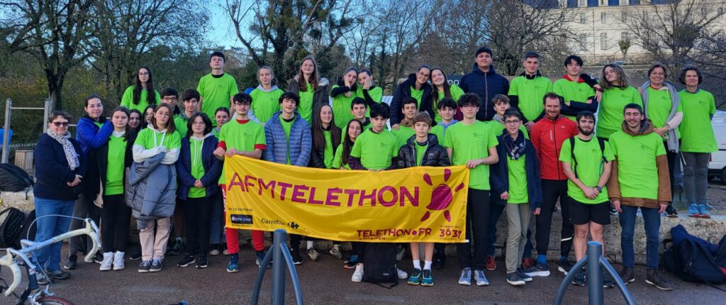 Vendredi 8 décembre, nos 36 participants de l’équipe Saint Aubin La Salle composée d’une trentaine de lycéens et de personnels-enseignants de l’ensemble scolaire ont parcouru 342km ! Notre équipe s’est mobilisée avec enthousiasme et motivation pour courir et marcher autour de l’étang Saint Nicolas, au profit du Téléthon.