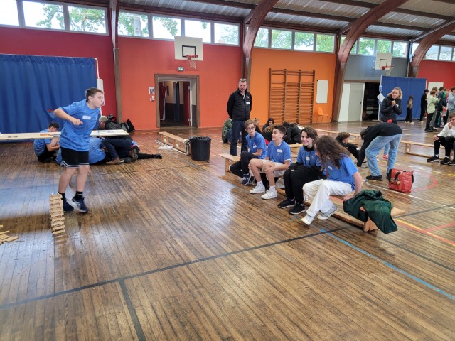 Aux couleurs de leur établissement et par équipes, les élèves se sont affrontés dans le gymnase du lycée et sur le plateau sportif en réalisant des défis physiques, d’adresse et de logique : construction de tours, quarto géant, tir à la corde, mime des métiers, shoots basket… une variété d’ateliers qui a permis à chacun de se révéler, dans un esprit collectif et de challenge !
