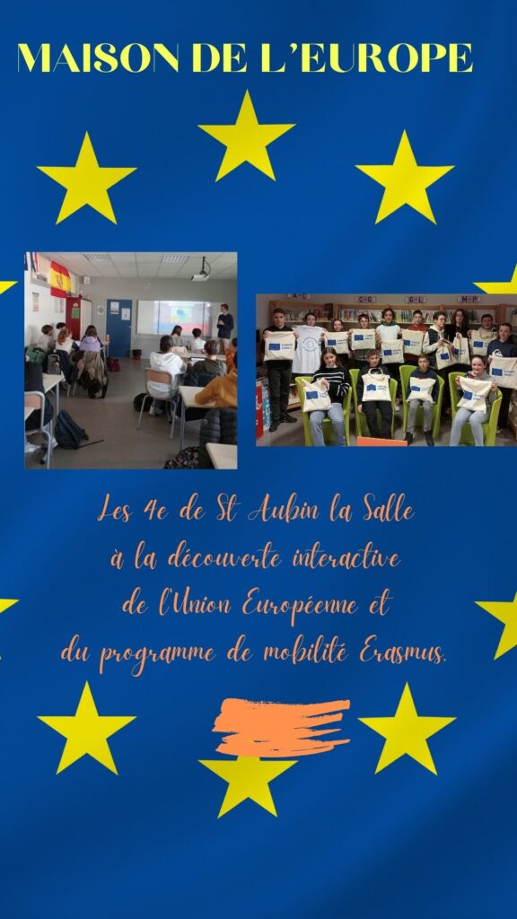 Fin janvier, les élèves de 4e du collège Saint Aubin la Salle ont eu l’intervention de la Maison de l’Europe avec des jeunes en service civique européen.