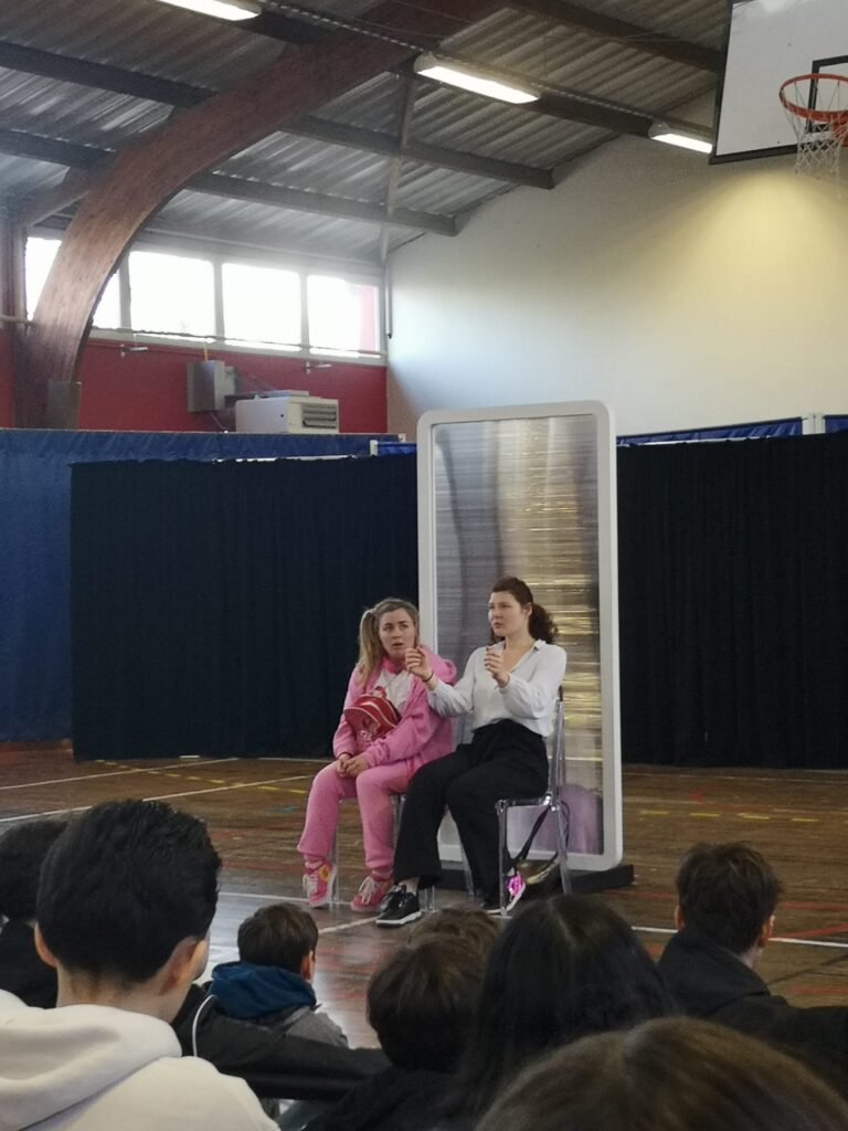 Mardi 30 janvier, nous avons accueilli dans le gymnase du collège la compagnie théâtrale « Piment langue d’oiseaux ».