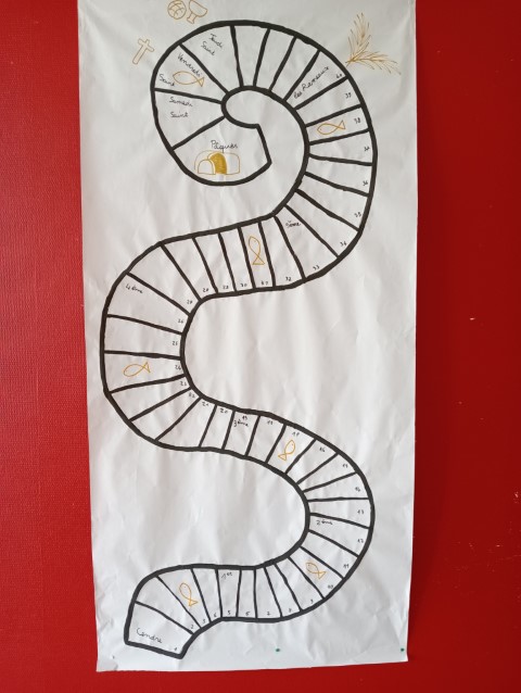 A l’école, nous nous préparons à Pâques : dans notre hall, un grand chemin nous montre le temps du Carême. Chaque classe réfléchit à des actions avec « le jeûne des mots méchants ». Les MS et GS ont même un espace gentillesse dans leur classe et ils ont réalisé un cœur après avoir enfoncé des clous sur un carré de bois. Nous observons nos comportements et nous mettons à germer un grain de blé à chaque bonne action . Ce temps de préparation nous conduira à notre célébration le 7 Avril !