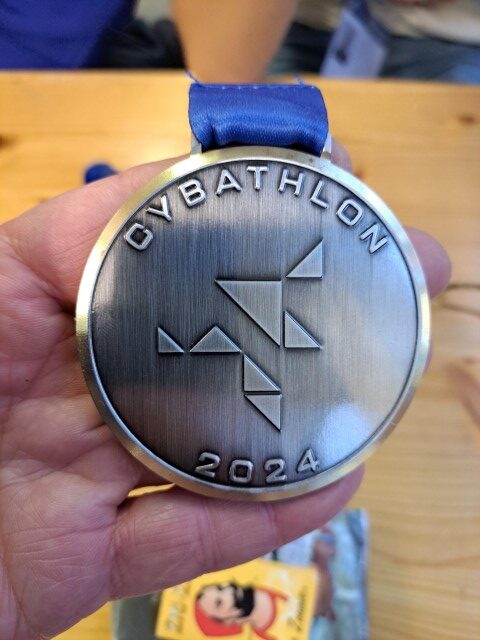 Grâce au travail de nos étudiants, Nicolas Huchet a décidé de s’inscrire à une compétition qui réunit des inventeurs (société – grandes écoles …) du monde entier autour de l’appareillage pour personnes handicapées : le CYBATHLON 2024. Les participants s’affrontent durant des épreuves de dextérités avec leur appareillage sur des épreuves de la vie courante.