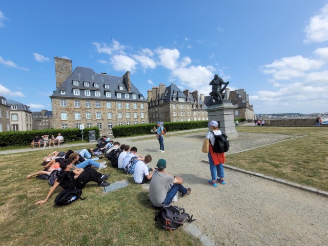 Le dernier jour a été l’occasion de découvrir la vieille ville de Saint Malo, la cathédrale Saint Vincent et ses remparts qui nous ont fait rencontrer trois personnages célèbres : le navigateur Jacques Cartier, l’écrivain François-René de Chateaubriand, et le corsaire Robert Surcouf. Un temps aussi pour découvrir la cité d’Alet et son rôle dans l’histoire et surtout pendant la seconde guerre mondiale, justement au programme.
