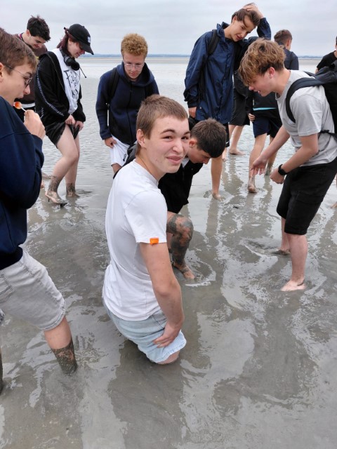 Arrivée au Mont Saint Michel, les élèves ont pu découvrir pendant deux heures le village de ce site parmi les dix plus visité de France et y pique-niquer en quartier libre. L’après-midi, un guide a fait découvrir le Mont « autrement » en nous expliquant son histoire mais aussi sa particularité géographique et nous en y faisant faire le tour « les pieds dans la vase » ou plutôt dans les sédiments qui pouvaient se transformer en de véritables sables mouvants au gré des sauts des élèves. En fin de journée, nous avons pris le cap pour notre Auberge de jeunesse à Saint Malo, à deux pas de la plage, où les élèves ont pris possession de leurs chambres composées par affinités.