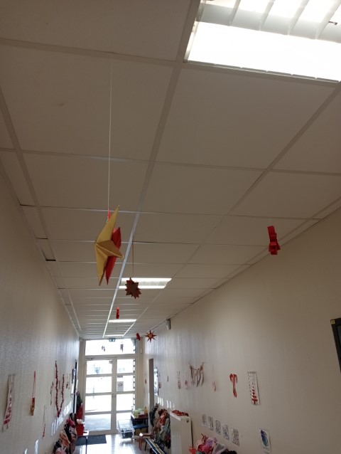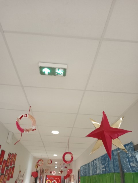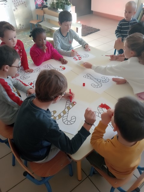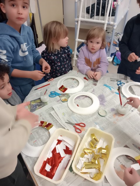 A l’approche du 1er Décembre, toutes les classes se sont organisées en parrainage pour vivre des ateliers afin de préparer des décorations de Noël pour tous les espaces de notre école.