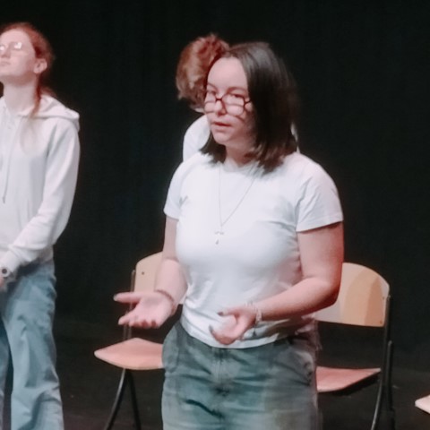 Pour clore le travail d’année consacré à l’expression orale et basé sur des extraits de théâtre, les élèves de 4ème du collège Jeanne d’Arc se sont produits sur la scène du Carré des Arts, devant leurs camarades. Ce mardi 21 mai, grâce aux conseils que leur a distillés le comédien Sébastien Magère, venu les voir plusieurs fois au cours des derniers mois, nos artistes ont donné vie aux textes de Cyrano, de Shakespeare, de Ionesco, et bien d’autres.