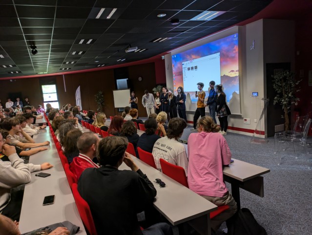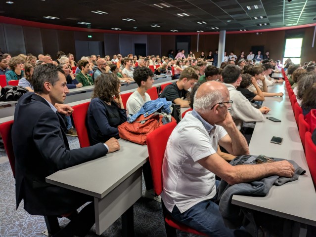 L’amphithéâtre était bien rempli pour visionner les courts métrages de nos élèves, en présence de l’équipe du film de terminale « La part du pauvre », plébiscité par le public !