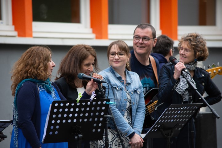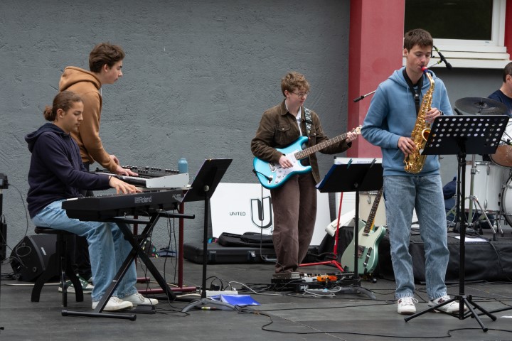 La deuxième partie a vu monter sur scène « United Kovers », le groupe formé par les adultes de l’établissement (enseignants et personnels). Ils nous ont offert un moment rock avec des interprétations réussies comme entre autre « La Grenade » de Clara Luciani, « Let Her Go » de Passenger, « Don’t Know Why » de Norah Jones, le percutant « Mutter » de Rammstein, et l’incontournable « Allumer le Feu » de Johnny Hallyday. Une véritable performance !Un grand merci à l’équipe technique pour la sonorisation professionnelle qui a permis à chacun de profiter pleinement de ce temps fort musical.