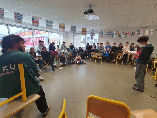 Le 3ème atelier, le 5 avril, a permis à chaque élève d’interpréter son slam devant sa classe et de déterminer avec un jury d’adultes du lycée les finalistes dans chaque classe.