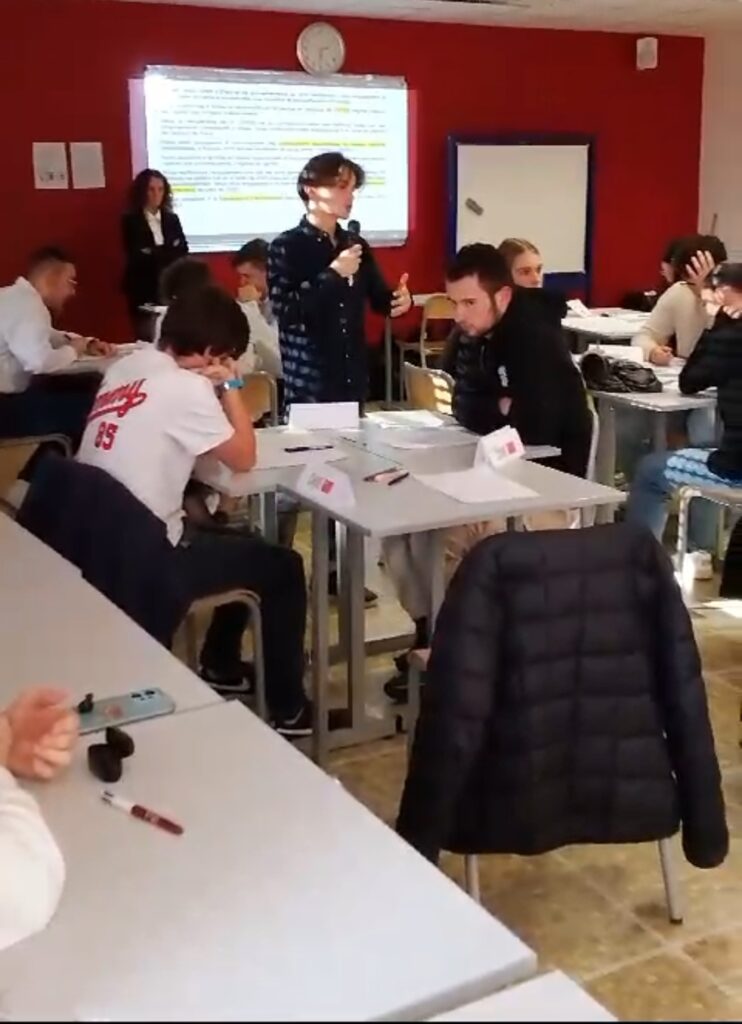 A l’occasion de la COP 28 à Dubaï, les élèves de terminale Histoire-Géographie Géoplitiques et Sciences Politiques ont simulé une COP au sein du lycée. Repartis en groupe, ils ont incarné les positions climatiques d’États comme l’Arabie Saoudite, l’Allemagne ou la Chine. L’occasion de mieux comprendre les grands enjeux actuels et le fonctionnement des relations internationales.