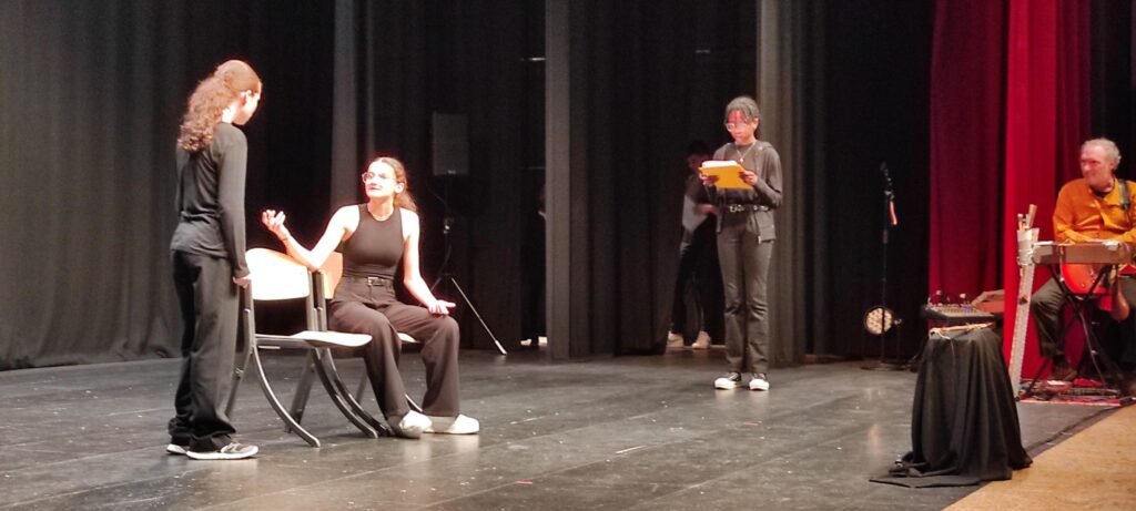 Le musicien Yves-Henry Guillonnet a accompagné nos élèves en proposant une ambiance sonore improvisée en fonction de ce qui se passait sur scène…