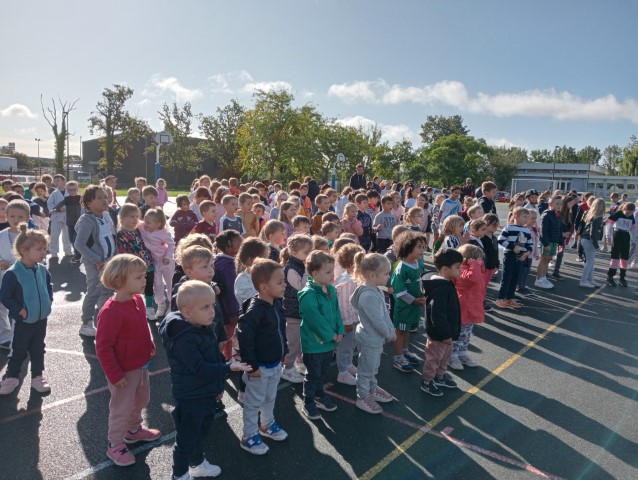 Vendredi 22 septembre, pour lancer la thématique de l’année, toute l’école s’est retrouvée en parrainage pour vivre un temps de jeu. Les élèves ont couru en relais pour découvrir un code qui leur permettait de gagner des morceaux de puzzles à reconstituer. Toute l’école s’est ensuite rassemblée pour partager les puzzles de chaque groupe.Nous avons clôturé ce temps par notre flashmob et nous avons relevé le défi de nous placer dans la même disposition que les anneaux olympiques.Nous remercions les 2 élèves du lycée qui ont manipulé le drône pour prendre les anneaux en photo : encore un peu de patience pour voir le résultat !