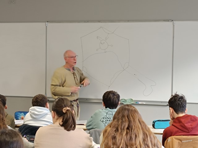 Fin janvier, les élèves de cinquième du collège Saint Aubin La Salle ont vécu une matinée à l’heure médiévale. La compagnie Plantagenet est venue leur donner des notions en calligraphie moyenâgeuse. Ils ont également eu un aperçu sur l’évolution des langues au moyen âge pour ensuite écouter des acteurs déclamer des contes moyenâgeux.