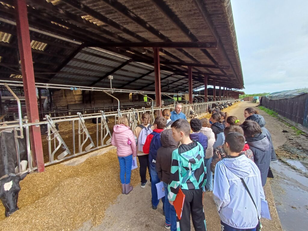 Les 6èmes du collège Saint Aubin La salle sont allés en visite à la ferme pédagogique de la « Clé des champs » à Andard. Ils ont participé à 3 ateliers en rapport avec l’alimentation humaine et le développement durable , thèmes au programme de Sciences. La  découverte du circuit du lait : du pis de la vache à la bouteille de lait en passant par le robot de traite.  Les élèves ont nourri les vaches quand un intervenant leur a montré les élevages et cultures de la ferme. On nous a présenté les techniques agricoles qui s’inscrivent dans le développement durable permettant la valorisation des déchets agricoles par exemple. Enfin lors du dernier atelier, ils ont percé le secret de la recette des yaourts et ont même pu en déguster.